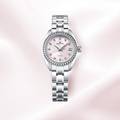 The case is small, discrete, and elegant at just 27.8mm in diameter. The pale pink dial recalls the color of cherry blossoms. And the diamond-set bezel and hour markers add further touches of refinement. And yet, this stainless steel ladies' watch with matching bracelet is as easy a choice for everyday wear as it is for special occasions.